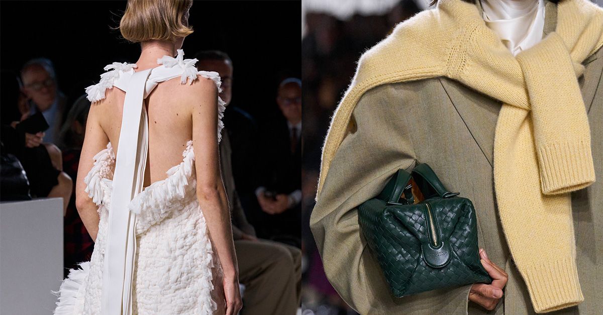 Ever since Michael Rider’s debut at Celine, I’ve been craving a soft white shoe to pair with everything, and this Bottega collection just intensified that need. (In fact, I bought these Phoebe Philo flats immediately after the show.) Another intense desire that solidified was for more texture, particularly white-on-white or monochrome textural layering. Craft has been a strong theme among luxury houses in the return of maximalism (or more so “simple with impact,” as Phoebe Philo’s viral quote so eloquently put it). I think there has been a collective boredom with quiet luxury and “elevated essentials,” but many of us are not ready to be full-blown maximalists just yet. Texture feels like a natural step in that direction—slowly turning up the volume on our dressing (both literally and figuratively). I love how Trotter paired summery poplins with feathers usually reserved for holidays and how heavy, textural knits were balanced with simple, lightweight trousers. I picked up these Colleen Allen cotton pants that I’ll wear with chunky knits and perhaps this Dries clutch. I also scored this ruffled McQueen top to pair back to simple ivory trousers.