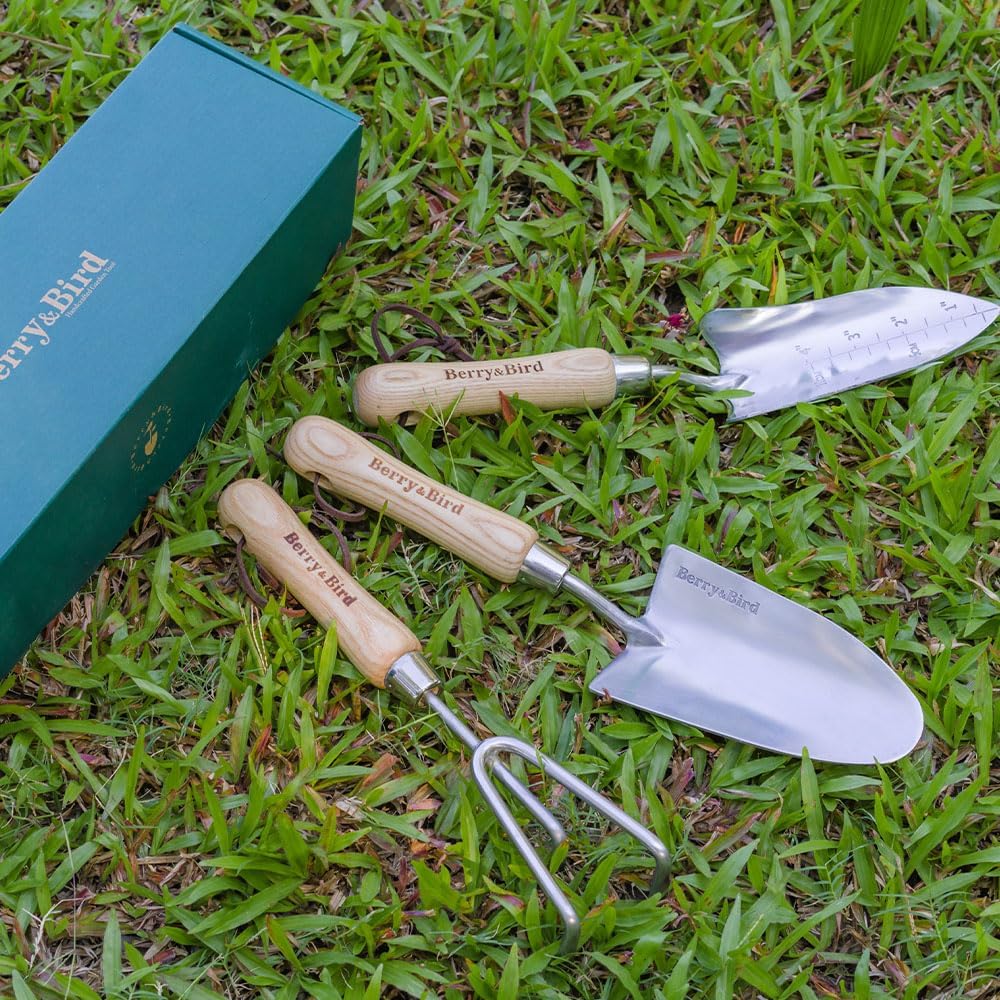 What You Get: 1* Berry&Bird 3-piece stainless steel heavy-duty gardening tool set, 30-day free replacement, our worry-free 10-year warranty and friendly customer service.