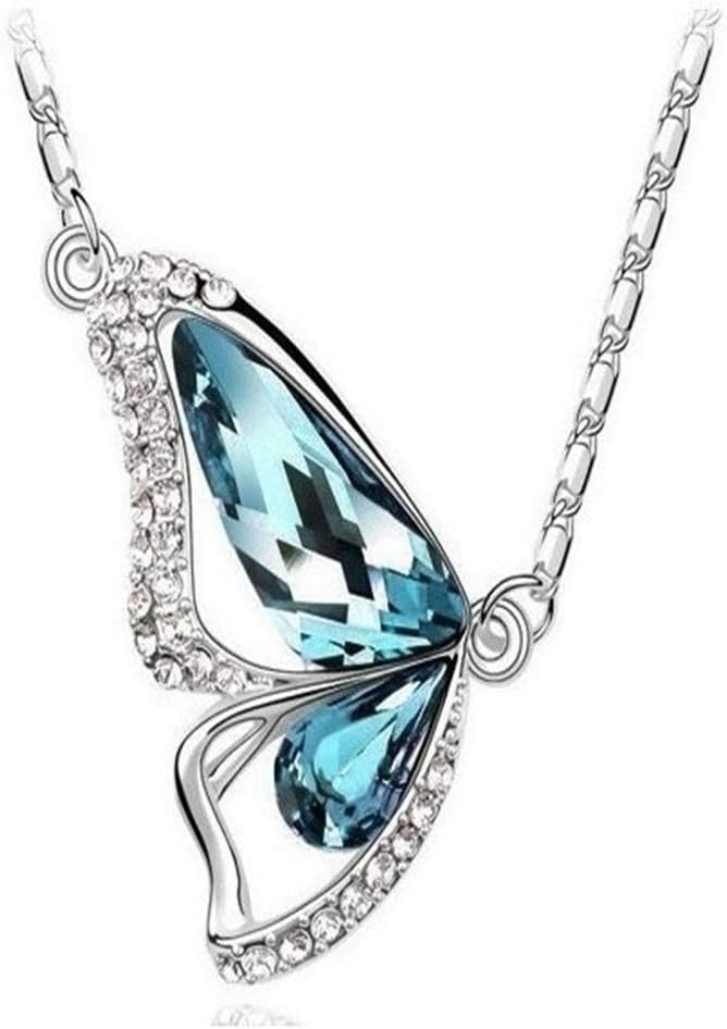 Butterfly necklace set is mainly made of alloy, inlaid with imitation crystal and rhinestone.