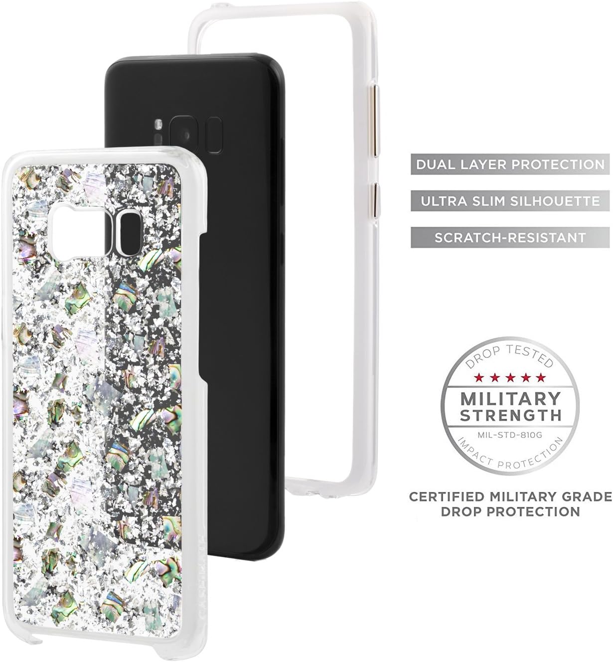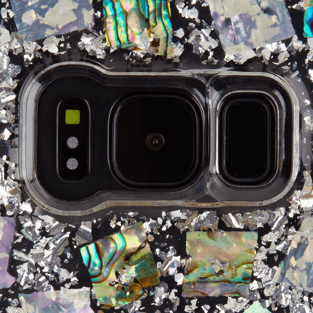 Enjoy the subtle iridescence of this Samsung Galaxy S8+ case, featuring genuine mother of pearl mixed with sterling silver elements encased in a clear resin.