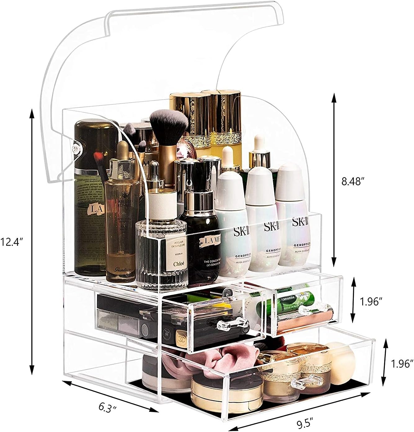 【DUSTPROOF AND WATERPROOF】 Curved top cover and smooth drawers with handles, never worry about your cosmetics and jewelry being damaged by water in the bathroom, and you will not need to wipe off the dust from cosmetics bottles jewelry that has flat caps.