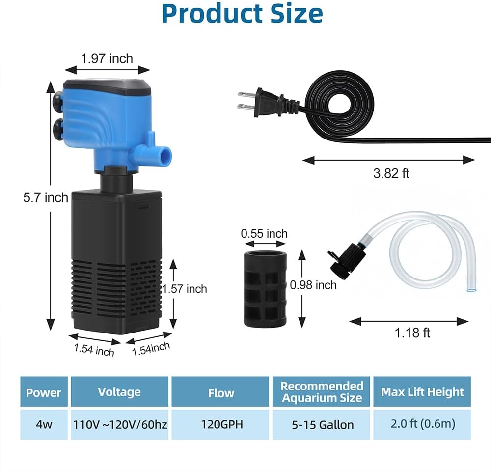 3.Ultra Silent: DaToo small aquarium filter utilizes advanced noise reduction technology that operates at as low as 40 decibels, ensuring that your aquarium runs both quietly and efficiently.