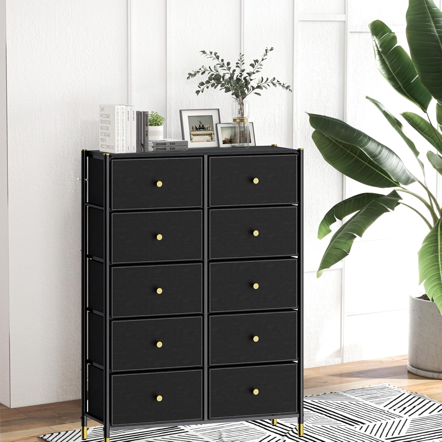 Modern Design: DECOMOMO’s chest of drawers is a beautiful and aesthetic piece of bedroom furniture. The non-woven closet drawers have smooth faux leather front and golden knobs and feet which adds a luxurious touch exuding elegance and refinement.