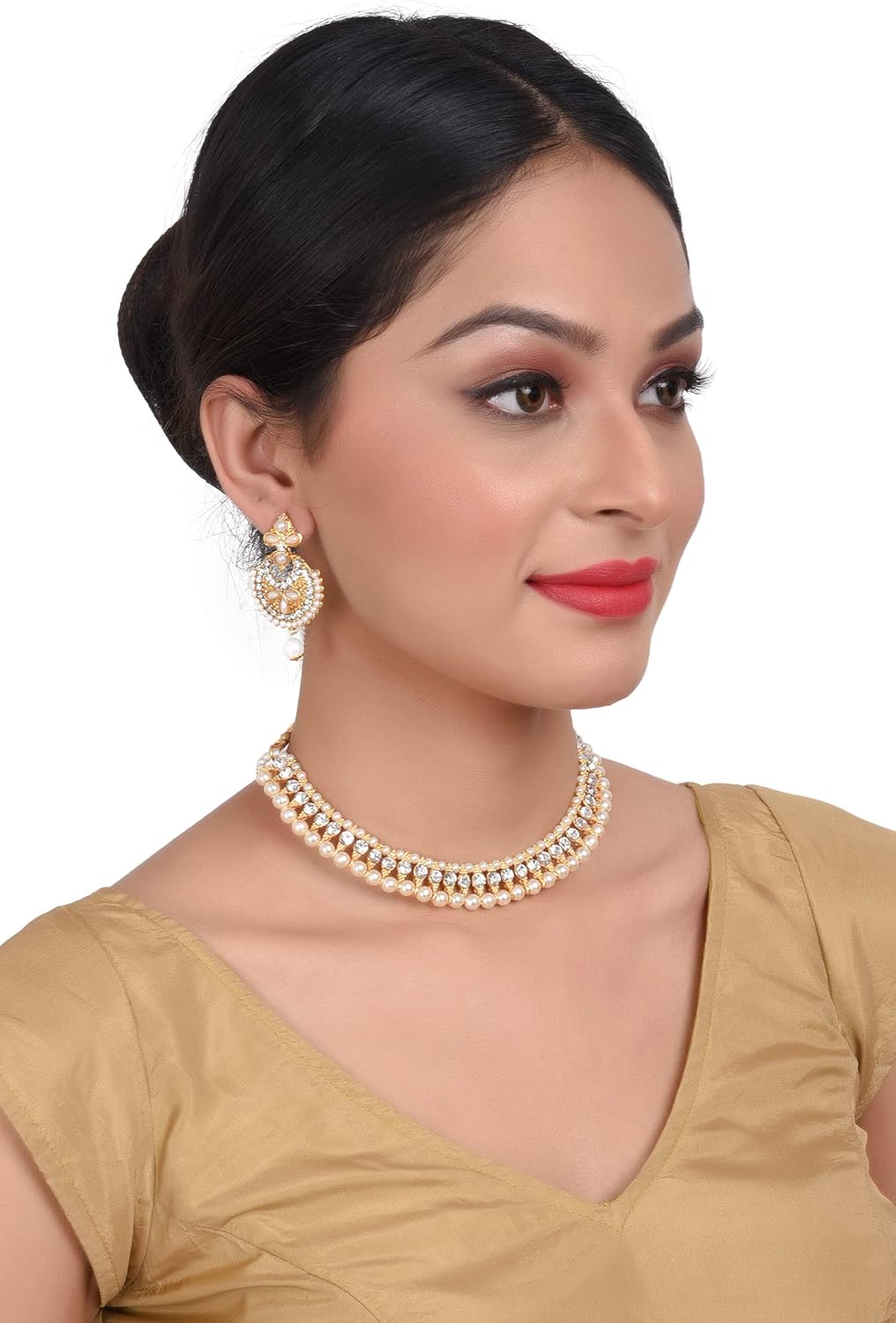 Be the first to review “Efulgenz Indian Bollywood Bridal Wedding 14 K Gold Plated Faux Pearl Crystal Rhinstone Choker Necklace Earring Jewelry Set”