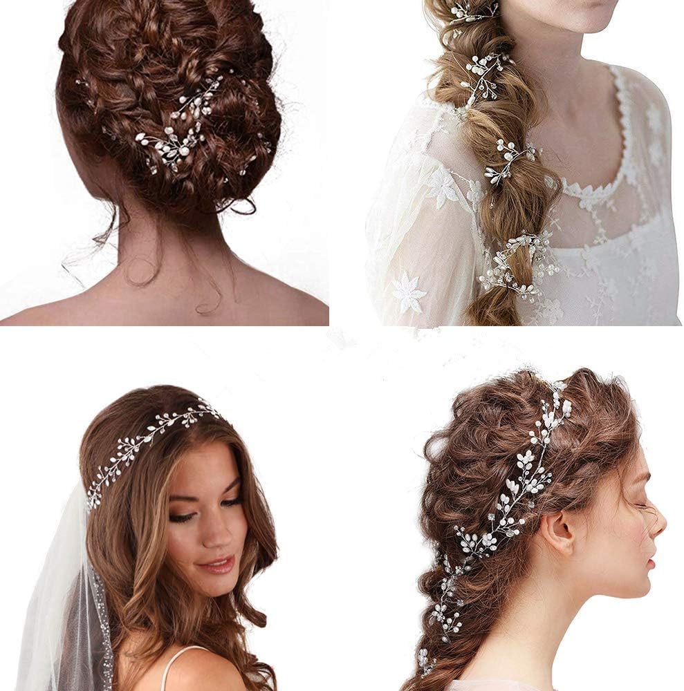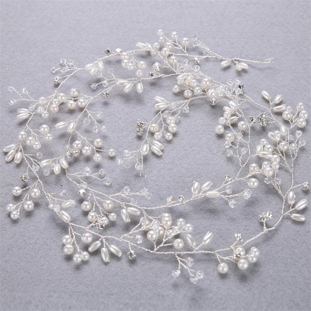 Fashion Hair Jewelry Bridal Headband Pearl Crystal Headpieces Wedding Hair Accessories for Women Girls 100cm (Silver)