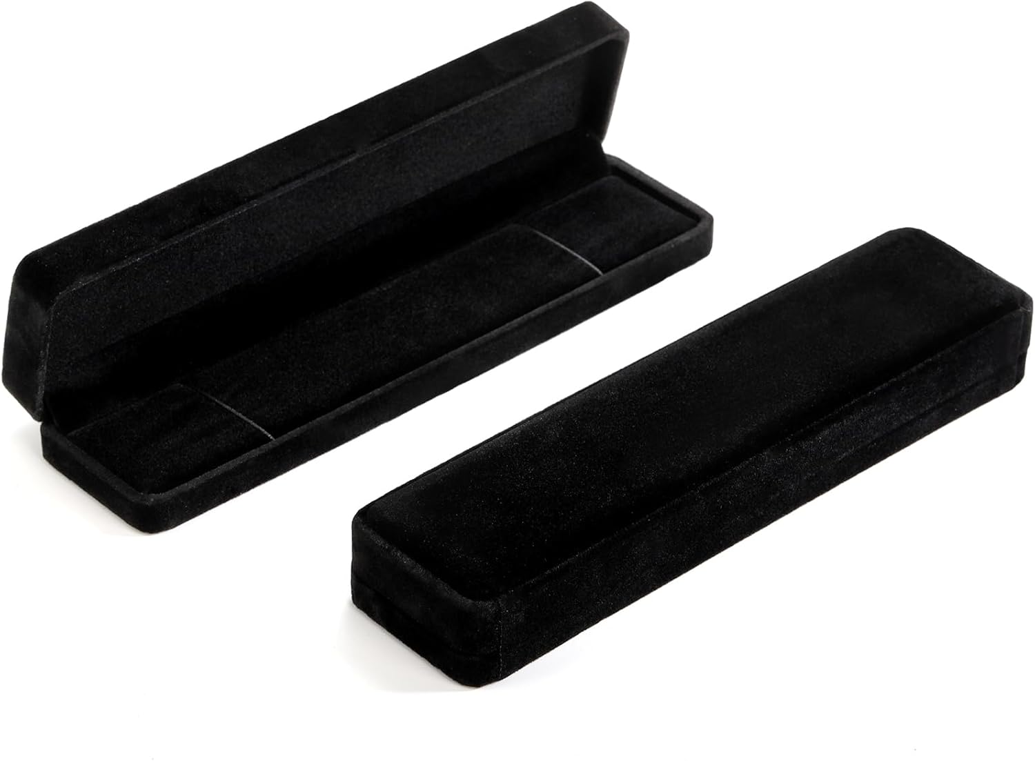 High Quality Material: The bracelet boxes are made of high quality velvet, really very soft to protect your jewelry, which can keep your jewelry from being broken and faded, to support you for a long time.Product Dimensions: 8.7L x 2.2W x 1.2H inches, provides a nice space for packing and displaying watch, necklaces, bracelet, pendant, chains and other trinkets, which can keep your jewelry in good storage.Delicate Design: Each necklace gift box take delicate design, are covered in velvet appearance, the elastic band design can easily fix your jewelry without slipping off and better display the jewelry.Enough Quantity: You will receive 8 black velvet necklace gift boxes, sufficient quantity can provide you and your family with daily gift packaging needs, soft to the touch and well protect your jewelry and accessories from any kind of damage or abrasion. Notice: jewelry not included.
