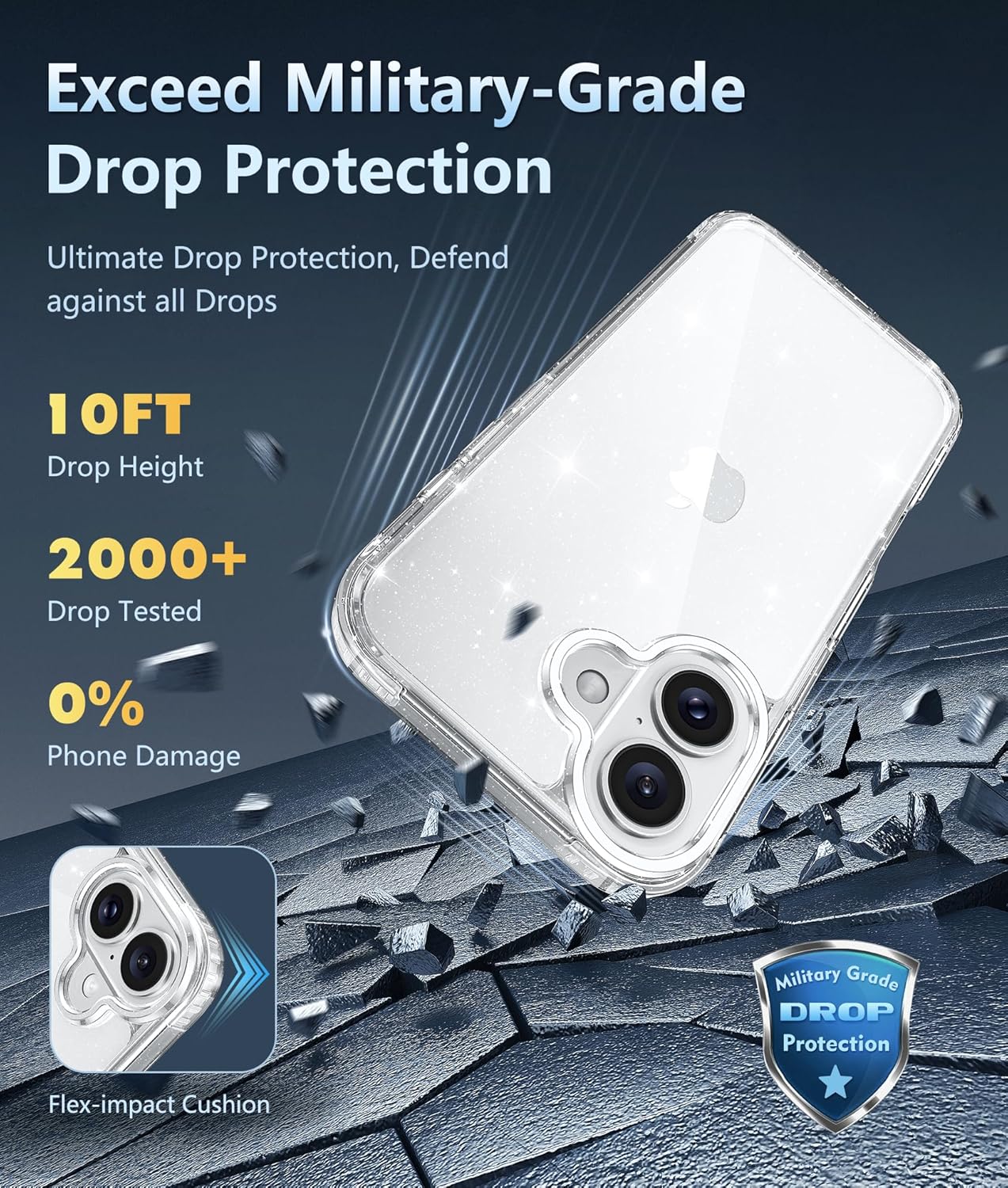 10FT Military Grade Protection: Passed Military Drop Tested up to 10 FT. This iPhone 16 clear case backplane is made with rigid polycarbonate and flexible shockproof TPU bumpers around the edge and features 4 built-in corner Airbags to absorb impact, which can prevent your Phone from accidental drops, bumps, and scratches