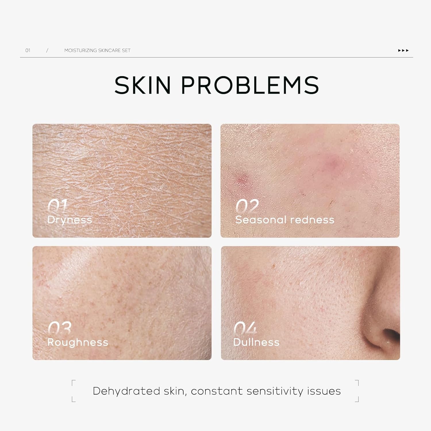 【Complete Skincare Routine】: This 5-piece set includes a cleansing gel, hydrating toner, serum, essence cream, and eye cream. Together, they provide a comprehensive skincare regimen that addresses hydration at every step.