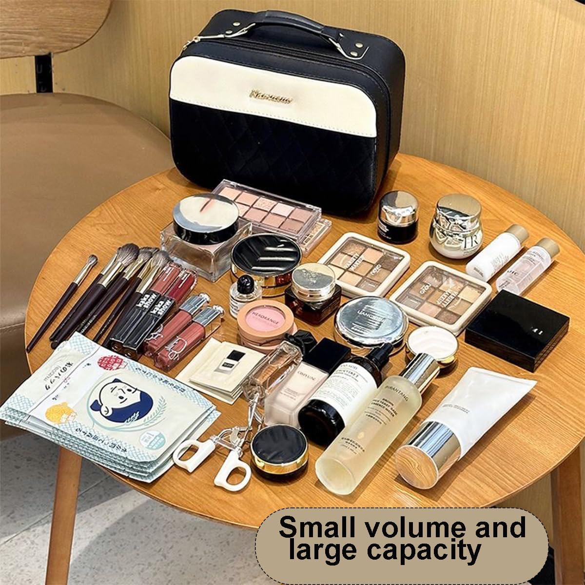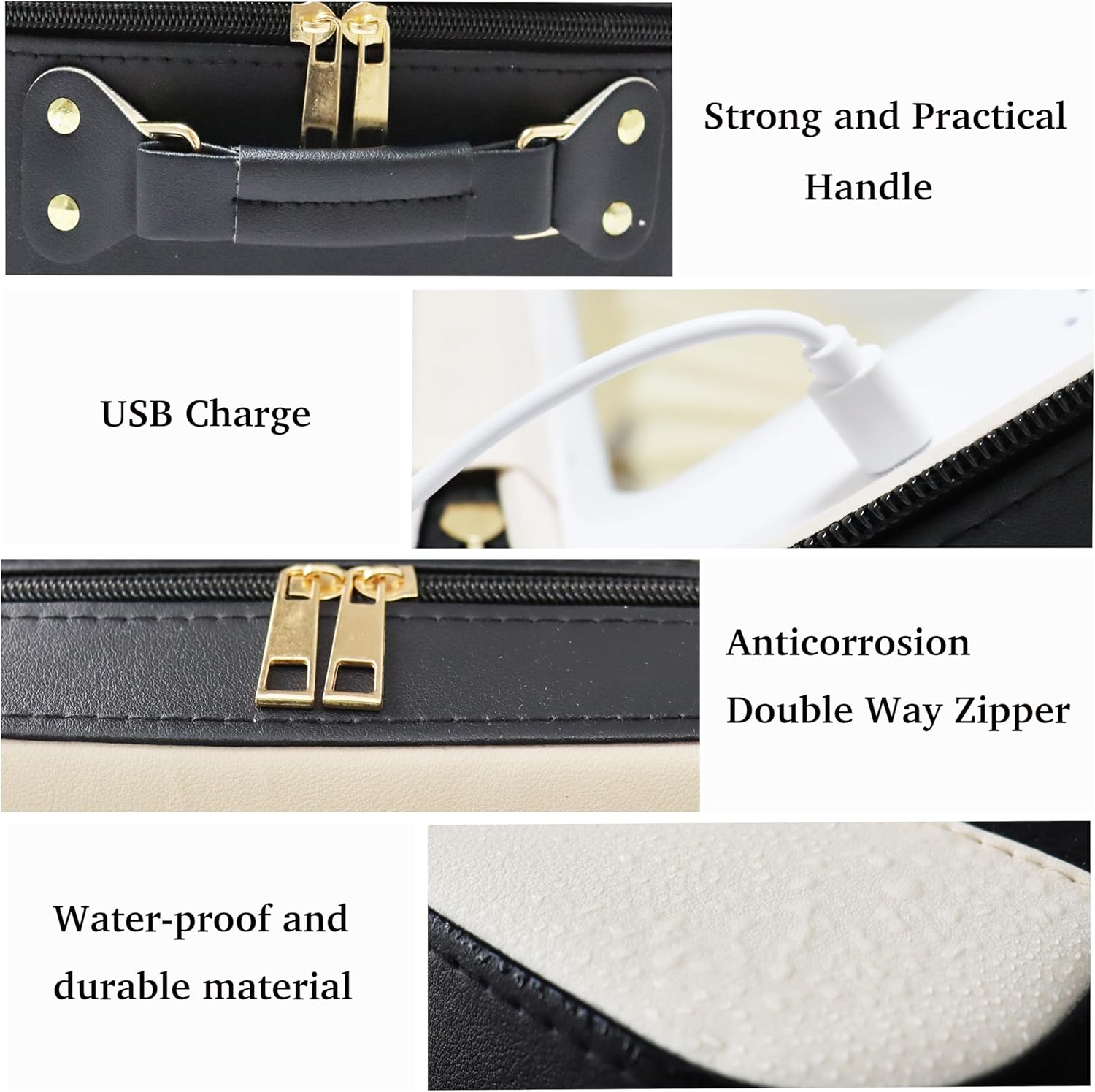 💄【High-Quality Material】This vanity case features a luxurious synthetic leather exterior that is waterproof and durable. The ergonomic handle and electroplated light gold zipper are both resistant to corrosion and fading, ensuring long-lasting quality and style.