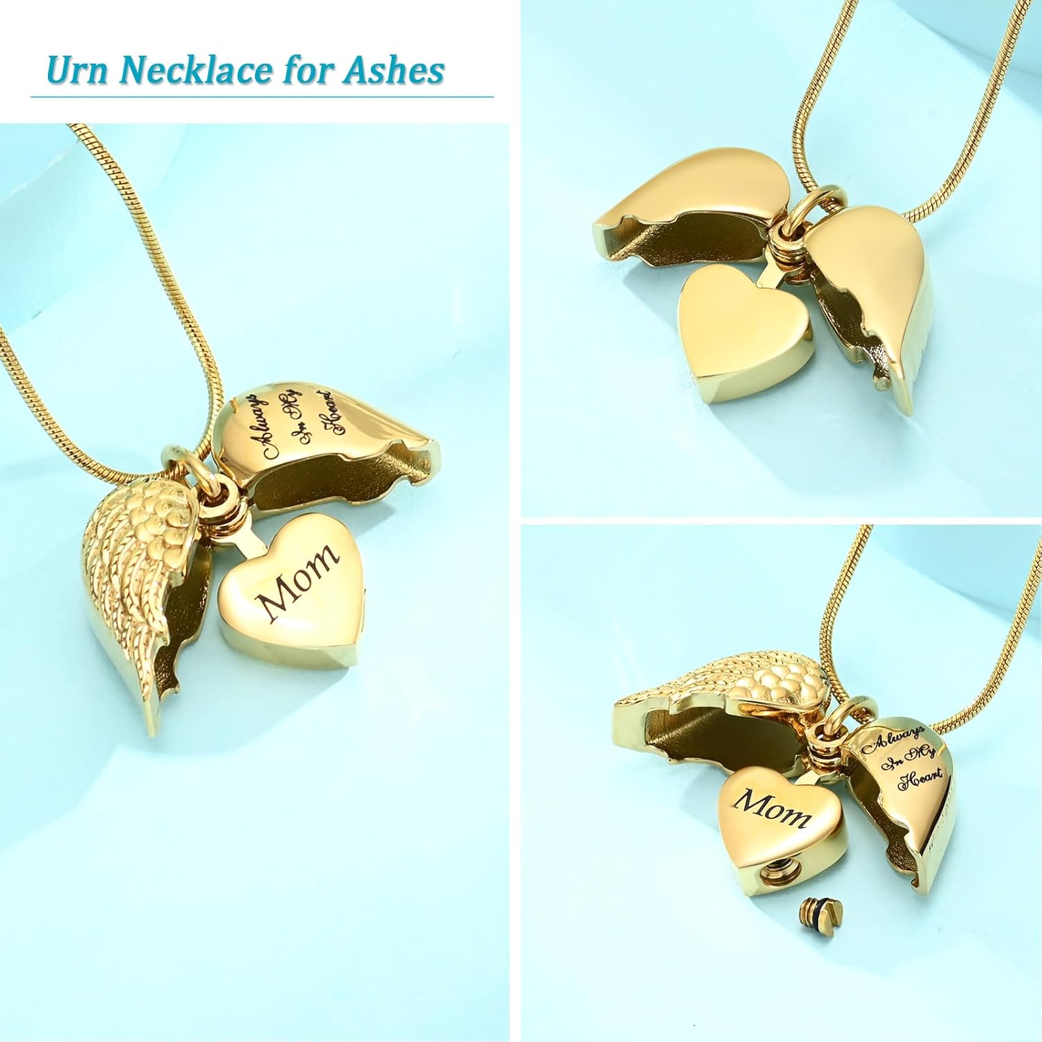 mingkejw Angel Wings Heart Urn Necklace – Always in my heart