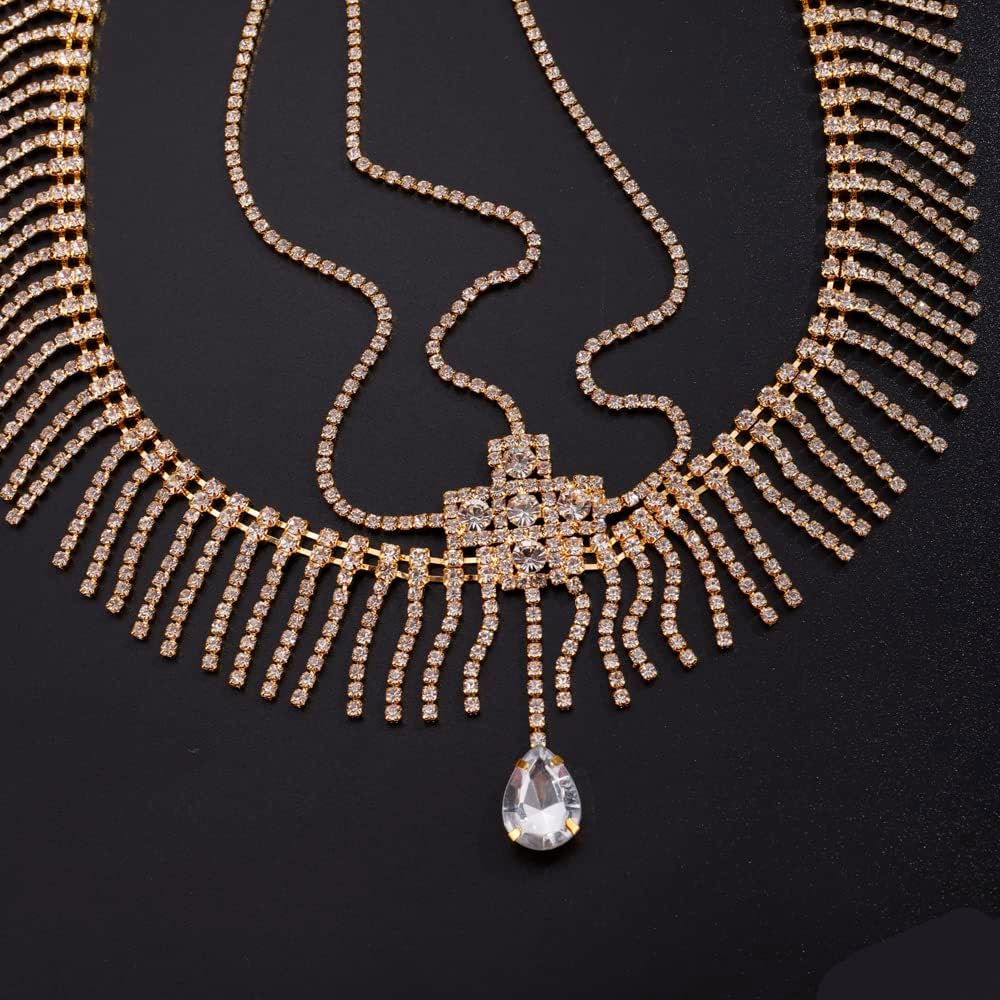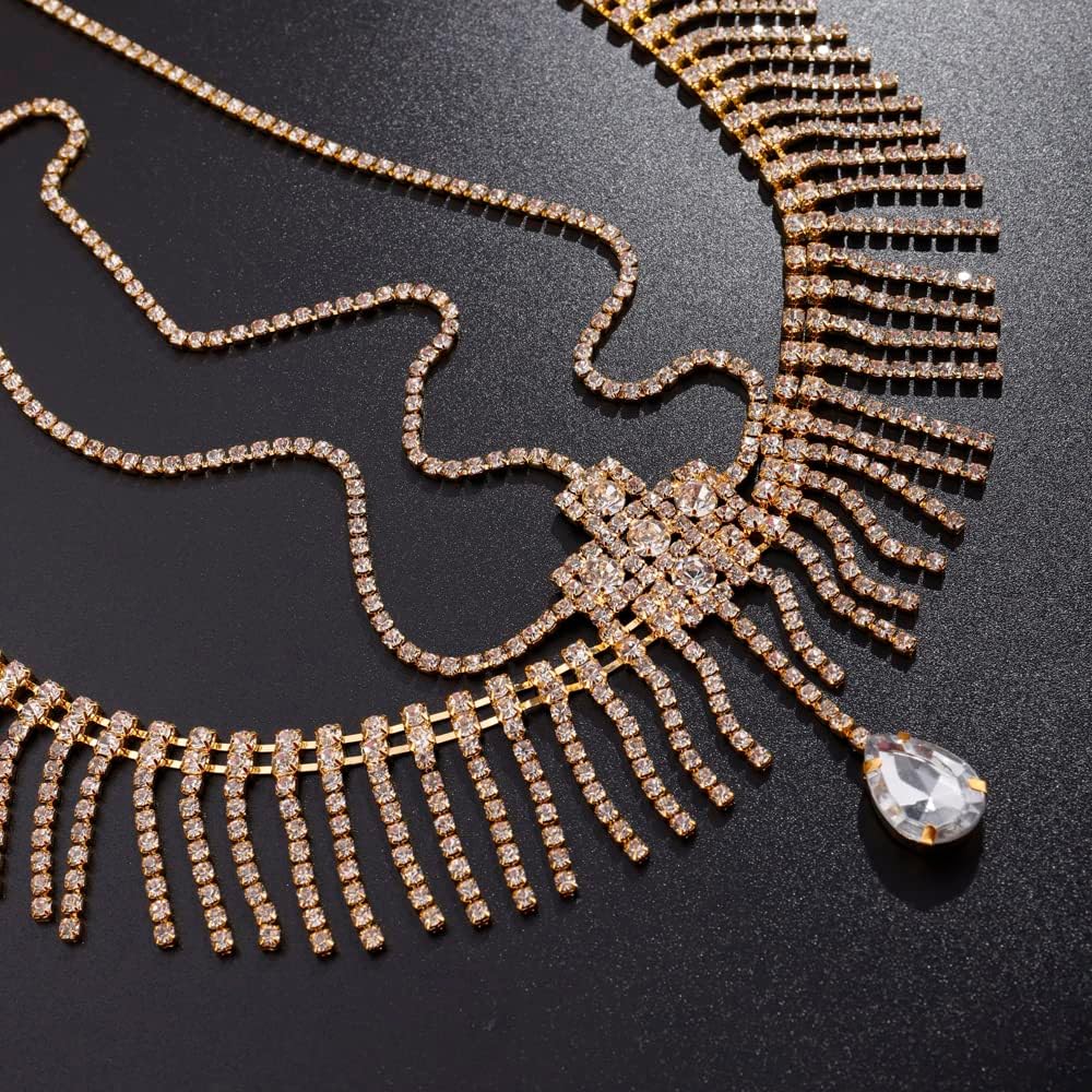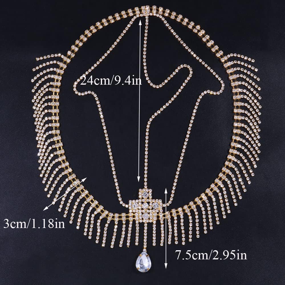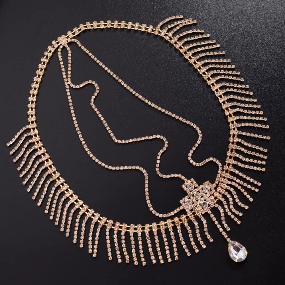 Missgrace Bohemian Women Bridal Layered Luxurious Shiny Rhinestone Head Chain Headband Headpiece Tassel Rhinestones Forehead Hair Chain Prom Party Wedding Hair Accessories for Women Girls (GOLD)