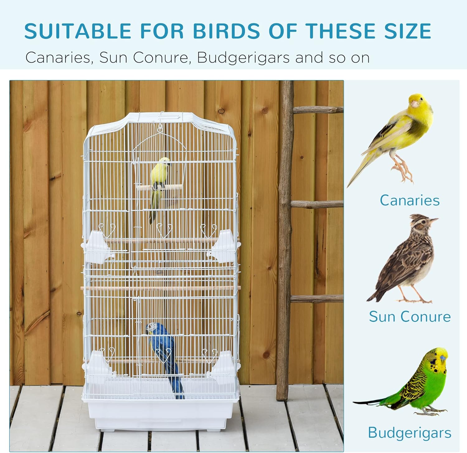 Ample Living Space: The flight cage offers much space for your bird to stretch their wings and play around. With 0.4″ (0.9 cm) bar spacing, the flight cage is suitable for finches, budgies, and other small birds.