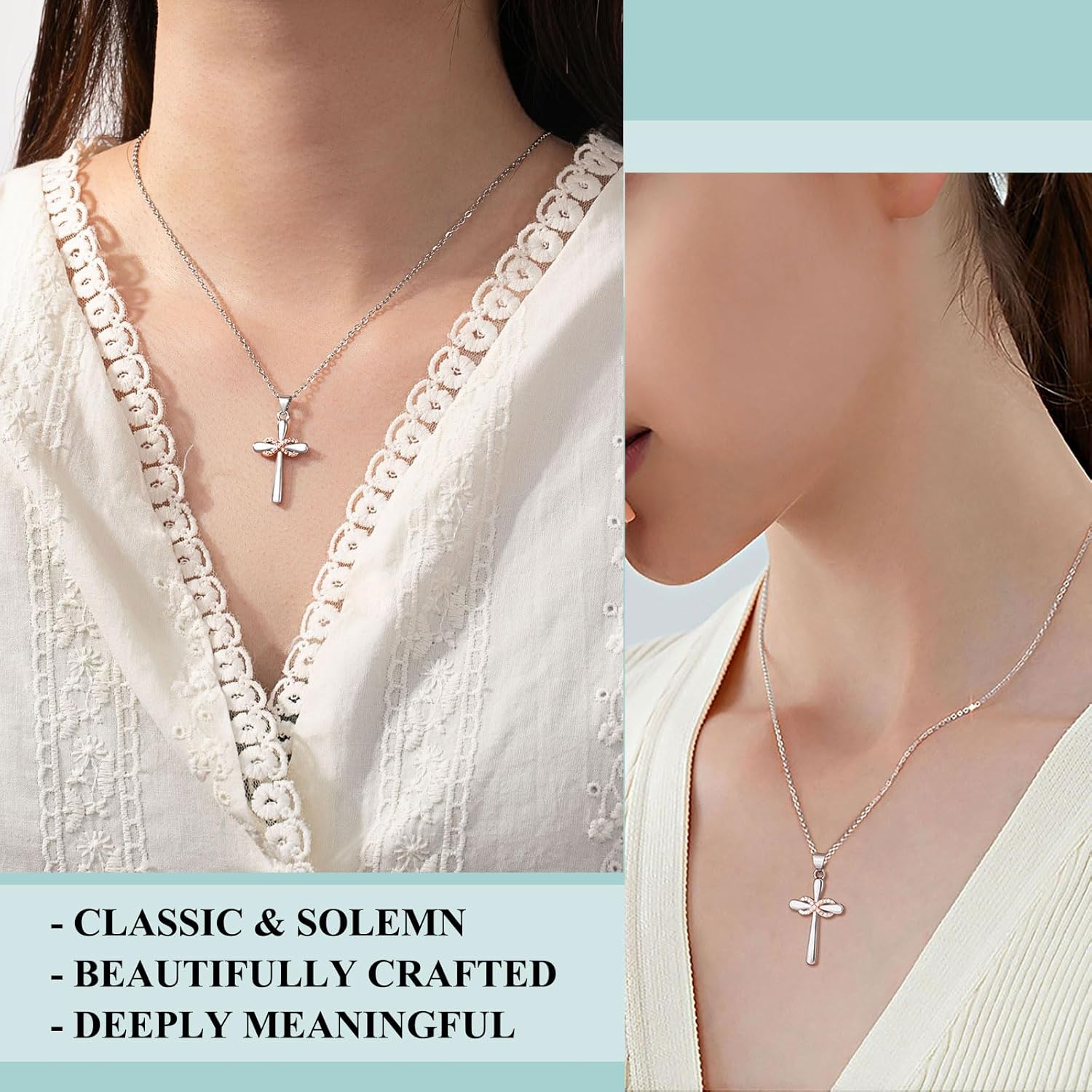 PINKDODO Two-tone Cross Necklace Christian Gifts for Women Easter Confirmation Holy First Communion Gifts for Girls