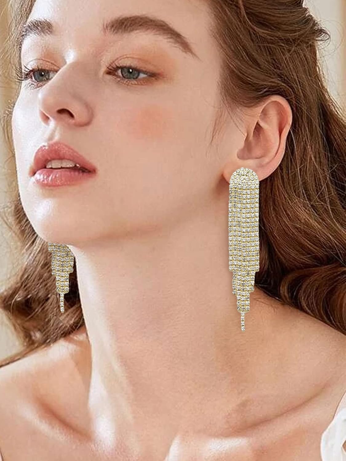 Be the first to review “Rhinestone Earrings Long Tassel Earrings for Women Chain Earrings Jewelry Gift for Wedding Party”