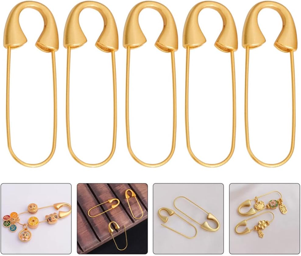 Metal Safety Pin 5pcs Gold Pin Gold Decor Brooch Pin with Holes Safety Pin Metal Diy Brooch Pin Bride Diaper Jewelry