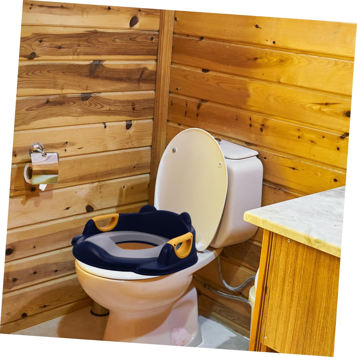 toilet training seat–streamlined backrest, comfortable arc fits tightly pu cushion, and comfortable,portable toilet seat