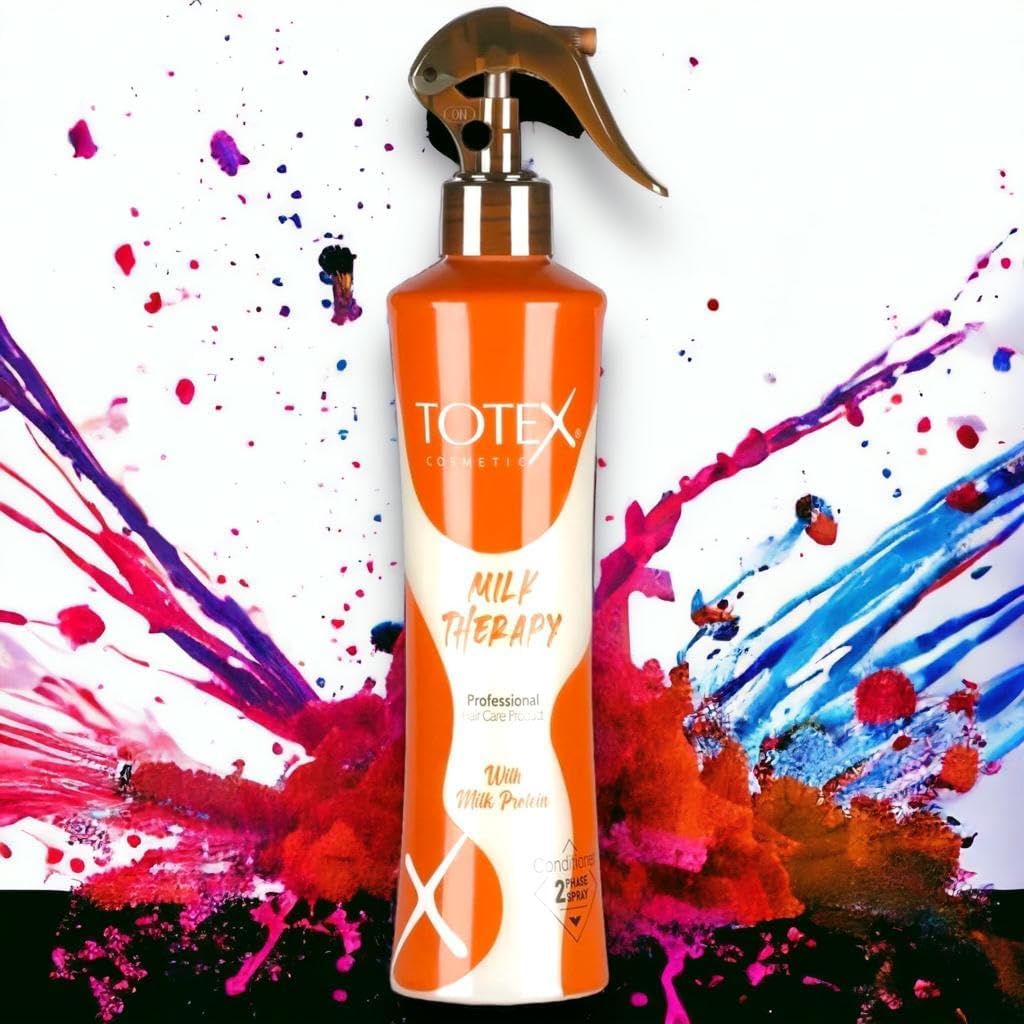 Totex Milk Therapy Conditioner Spray is a nourishing and moisturizing cream specifically designed to provide deep hydration to dry and damaged hair. Formulated with a blend of natural ingredients and essential oils, it helps restore and revitalize hair, making it soft, smooth and manageable. This conditioner spray is enriched with milk proteins, which help strengthen and repair hair from the inside, reducing breakage and split ends. It also contains vitamins and antioxidants that protect hair from environmental damage and promote healthy growth. The creamy texture of Milk Therapy Conditioner Spray makes it easy to apply and distribute evenly throughout the hair. It deeply moisturizes each strand, improving its elasticity and preventing frizz. The conditioner also helps to detangle and straighten hair, facilitating styling. Whether as a regular conditioner or as a deep conditioning treatment, Milk Therapy Spray Conditioner provides intensive hydration and nutrition to the hair, leaving it silky, shiny and full of life.