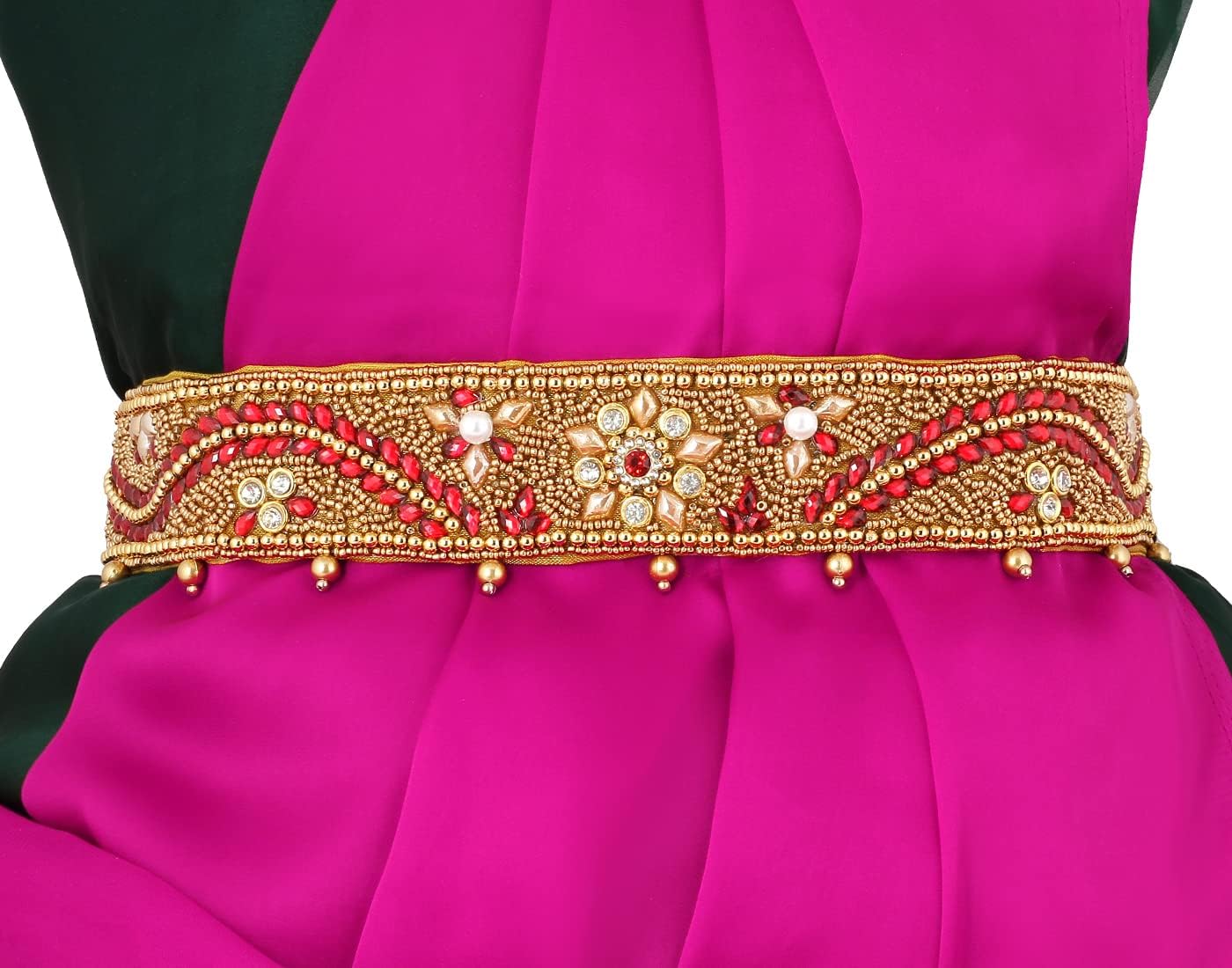 This Traditional Cloth Saree Belt chain Kamarband Kamarpatta is an accessory that adds charm to the Waist women Body. From ages it has ruled the fashion world with its beautiful designs and our Kamarband completely elegant look for Half Sarees Tips To Style Kamarbandh The Right Way. First of all you should figure out what type of waist belt for women will go well with your outfit, colour and pattern. If your outfit has golden embroidery or combination then go for Cloth belt kamarpatta jewellery. If your Saree or Lehenga has heavy embroidery work try to go for simple waist belt Chain. If your outfit is simple, then opt for three layered or two layered Traditional Cloth Kamarband Belt to add up light to your look. Make sure you go for a broad Belt Tagdi unless it is very important ceremony that you attending. To keep it simple yet elegant go for pearl or diamond & Crystal Stone Waist belt Jewellery this will lift your look with ease. If you wearing a Lehenga or Sharara make sure you wear the Traditional Saree kamarband a bit above your waist. If you are styling it with saree it looks below or on waist. Traditional saree like the cotton or silk saree can be styled with Chabbi Chhalla to maintain the traditional look. Kamarbandh is a form of waist jewelry worn on special occasions by Indian women. Kamarbandh is also called Belly Chain, Tagdi or Kamar Band Bandh Bandhani Patta is worn with traditional costumes like saree or lehenga Kamar bandh have been a part of Traditional Indian accessory. A Embroidery cloth Kamar Band Bandh Bandhani Patta Saree belt is one of the essentials of south Indian brides .Traditional Belt sarees are the latest trend that makes Kamar Band Bandh Bandhani Patta an essential accessory for women who want to experiment with their saree look.