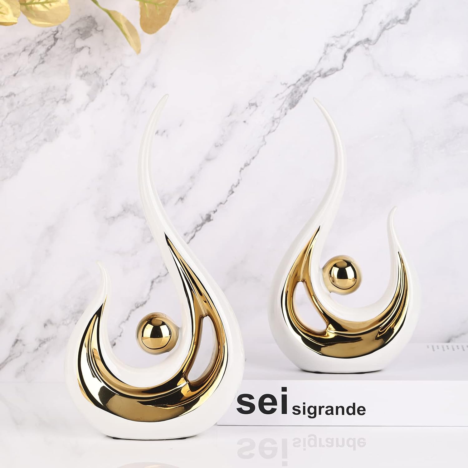 【The perfect modern home decor】this Gold and White ceramic abstract art Statue, With an elegant white appearance and light and luxurious gold elements, Gives the figurines a wealth of special meaning. Suitable for any decorative theme, whether Scandinavian, minimalist, or romantic; is Ideal for perfect aesthetic decoration
