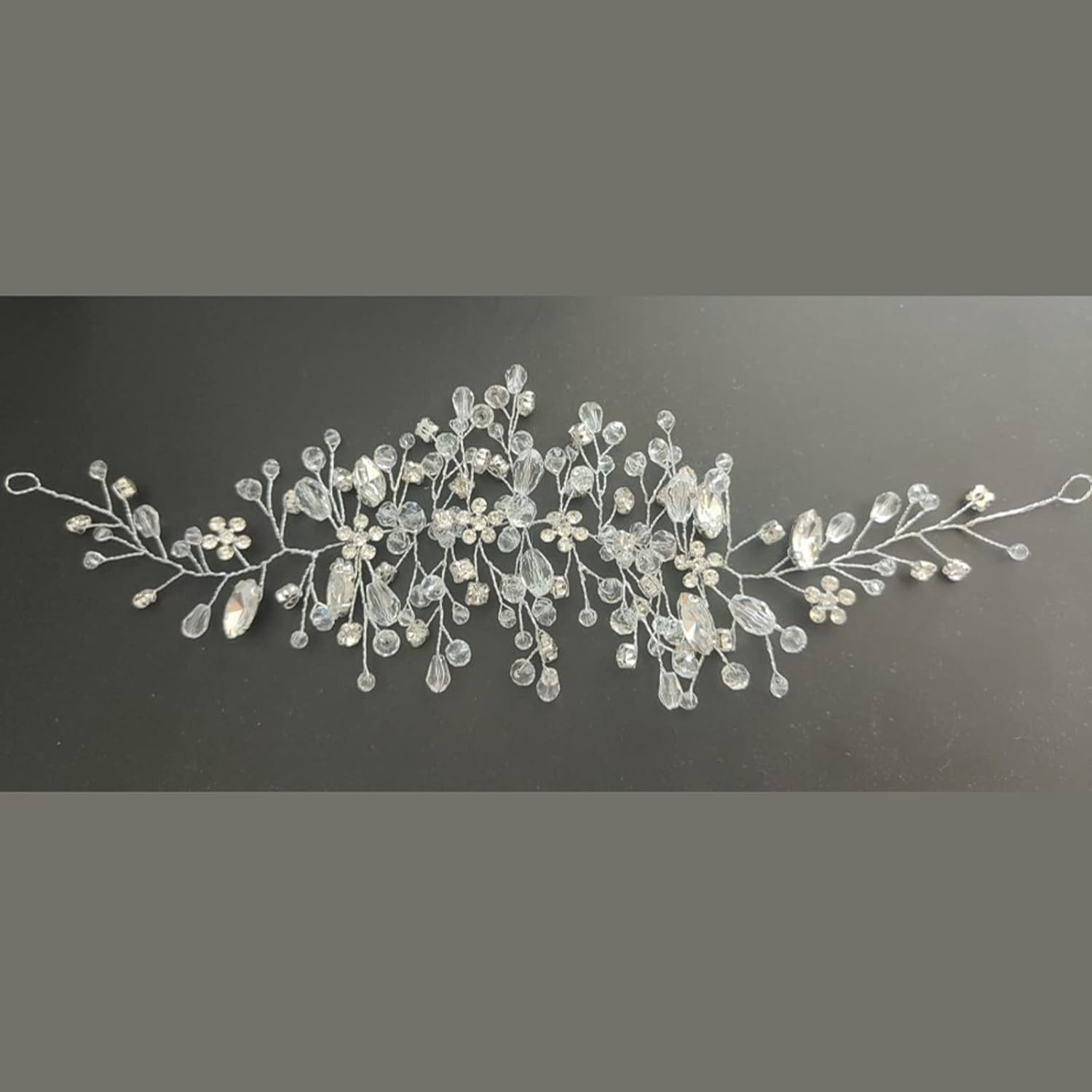 Silver rhinestone wedding hair accessories, unique design, well-made, made of crystal &f simulated pearl flowers & alloy silk. Approximate size of the party hair accessories: 9.84 inches (25CM)