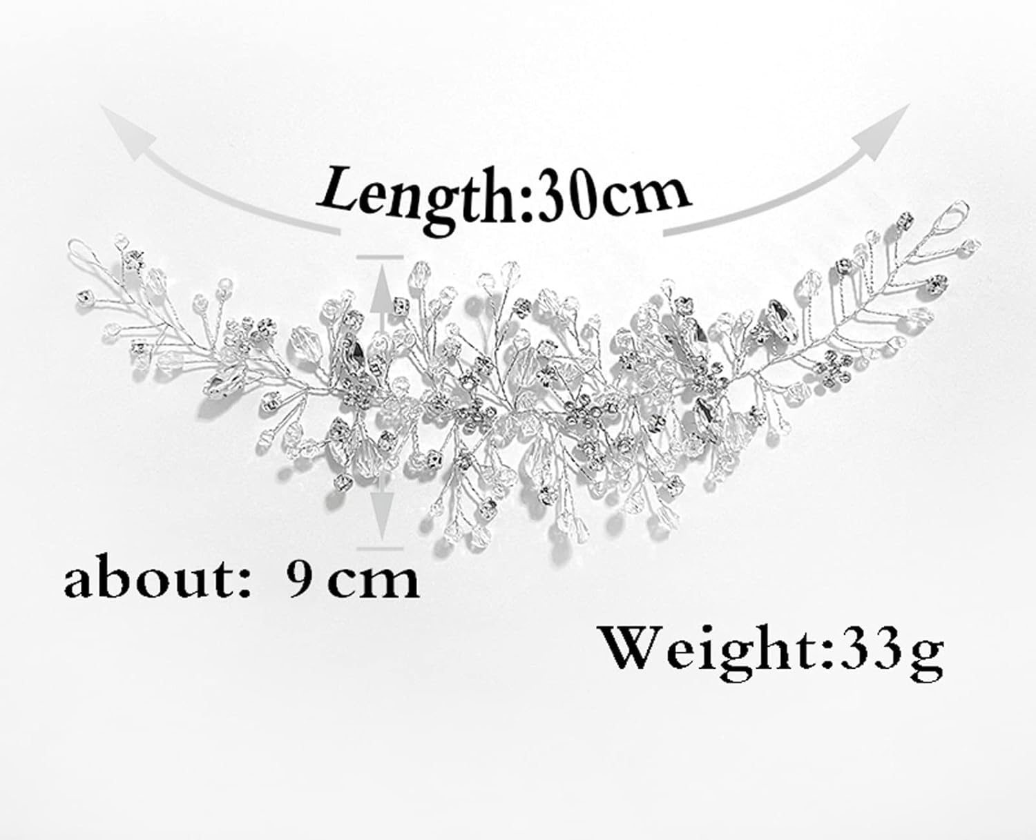 Length:30cmWidth:9cmWeight:33gMaterials: Rhinestones, Copper wirePackage included:1x Bride Wedding Hair Piece